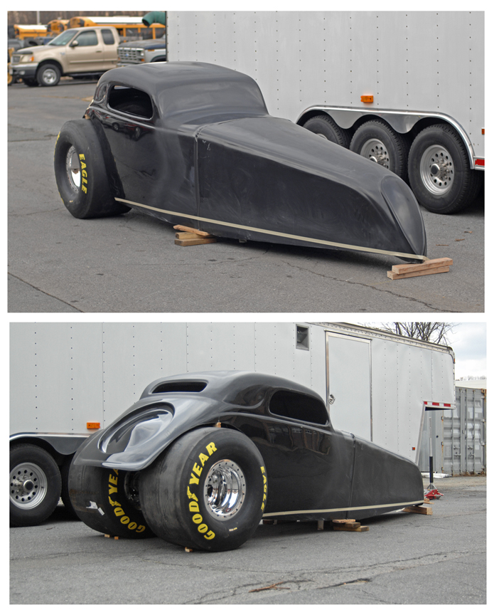 Class Glass & Performance recently completed a new body for Bob Rizzoli's 9 second street driven 37 Fait Topolino. The new body will allow Bob to externd the wheel base 10 inches and has a filled roof, 15" cowl extension, rear window and extended nose.